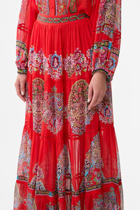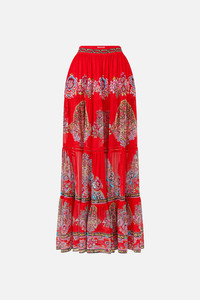 The Artisans Of Anatolia Tiered Maxi Skirt is a handcrafted silk silhouette designed by our in house artisans. Reimagined in an exclusive limited edition print, this luxury maxi skirt is cut in a flattering, fit and flare shape with an elasticated back for effortless wear. It's tiered skirt panels cascade effortlessly into a sweeping, full length hemline for romantic movement with every step. - 100% Silk - Long Length - Fit And Flare - Tiered Skirt - Elasticated Back SKU 00036963-ARTIANAT-XS Size and Fit Our model is 5'10 (178cm) tall and wears a size S (AU 10). Bust: 40in (101.6cm) Waist: 26.5in (67cm) Hips: 38in (96.5cm) Designed and fitted true to size, take your normal size. Fabric and Care 100% SILK Meticulously crafted with a tighter weave that enhances its structure, silk georgette showcases an ethereal, semi-sheer fabric with a delicate grainy texture, creating a soft bounce and decadent draping.