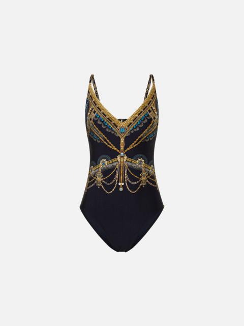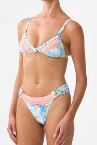 The Topkapi Pop Tri Bikini Top With Knot Front is a handcrafted silhouette designed by our in house artisans. Reimagined in an exclusive limited edition print, this textured towelling inspired triangle bikini top is made with B to C cups in mind with adjustable and convertible straps and back clasp fastening for versatility. Features a knot detail that the front between the bust and it's finished with crystal embellishment for luminous detail. - To Suit B to C Cup - Centre Front Knot Detail - Adjustable And Convertible Straps - Textured Towelling Inspired Swim Fabric - Back Clasp Fastening - Crystal Embellishment SKU 00037552-TOPKIPOP-XS Size and Fit Our model is 5'10 (178cm) tall and wears a size S (AU 10). Bust: 40in (101.6cm) Waist: 26.5in (67cm) Hips: 38in (96.5cm) Fabric and Care MAIN: 85% POLYAMIDE, 15% ELASTANE