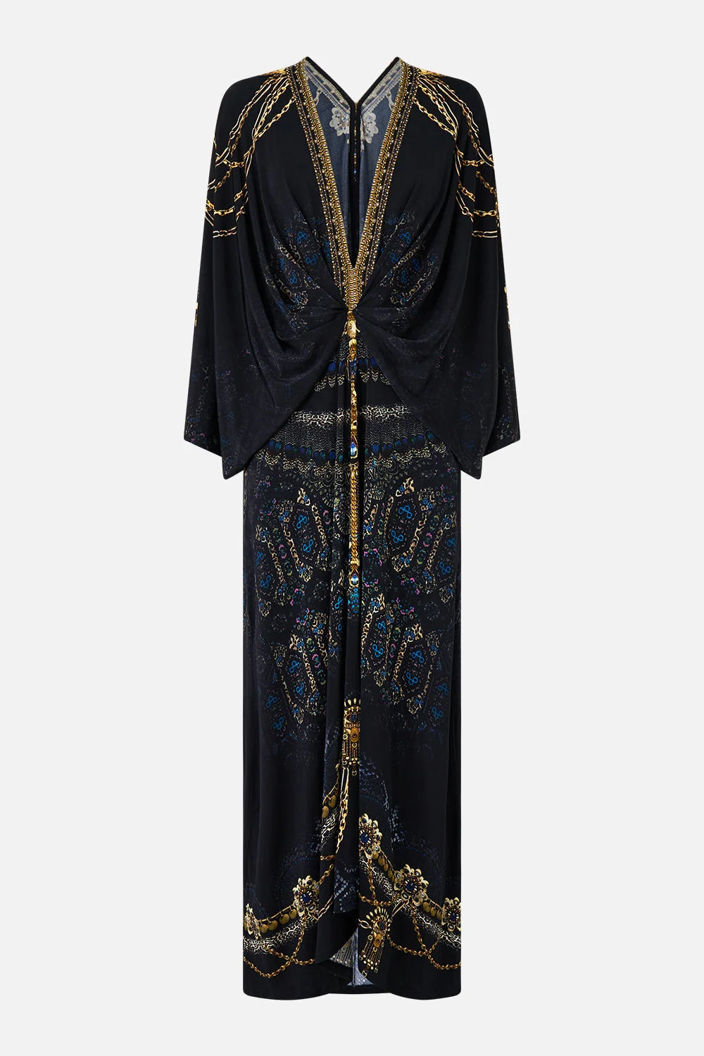 The Song Of The Solstice Tuck Front Jersey Dress is a handcrafted silhouette designed by our in house artisans. Reimagined in an exclusive limited edition print, our full length jersey dress features a V neckline that meets a fitted waist for a sculpted fit. Tuck front details enhance it's flattering form for effortless versatility. - Full Length - Tuck Front - V Neckline - Fitted Waist SKU 00039511-SONGSOLS-XS Size and Fit Our model is 5'10 (178cm) tall and wears a size S (AU 10). Bust: 40in (101.6cm) Waist: 26.5in (67cm) Hips: 38in (96.5cm) Fabric and Care 92% VISCOSE 8% ELASTANE Viscose is a fibre crafted from the natural substance, cellulose, known for its softness, breathability and drape. It possesses a subtle sheen and is perfect for lightweight soft tailored silhouettes or more structured styles in heavier weights.