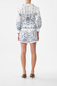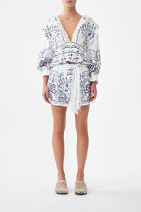 The All About That Lace Tuck Front Short is a handcrafted linen silhouette designed by our in house artisans. Reimagined in an exclusive limited edition print, these luxurious shorts feature front tucks, pockets and a removable belt for styling versatility. Its finished with a zip and button closure for effortless wear and decorated with intricately placed crystal embellishments. - 100% Linen - Waistband - Front Tucks - Zip And Button Closure - Removable Belt - Machine Embroidery - Pockets SKU 00038398-ABOULACE-XS Size and Fit Our model is 5'10 (178cm) tall and wears a size S (AU 10). Bust: 40in (101.6cm) Waist: 26.5in (67cm) Hips: 38in (96.5cm) Designed and fitted true to size, take your normal size. Fabric and Care 100% LINEN Designed and fitted true to size, take your normal size.