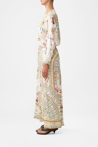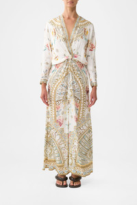 The Ottoman Dynasty Twist Front Batwing Dress is a handcrafted silk silhouette designed by our in house artisans. Reimagined in an exclusive limited edition print, our batwing dress features a statement twist across the front and full-length sleeves. Finished with crystal embellishment, a modesty button has been added at the neckline for styling versatility. - 100% Silk - Twist Front - Long Batwing Sleeve - Crystal Embellishment - Modesty Button At Neck SKU 00036789-OTTODYNA-XXS Size and Fit Our model is 5'10 (178cm) tall and wears a size S (AU 10). Bust: 40in (101.6cm) Waist: 26.5in (67cm) Hips: 38in (96.5cm) Designed as a relaxed fit, take your normal size, or select one size smaller for a neater fit. Fabric and Care 100% SILK Silk satin embodies a sumptuously smooth finish that offers a rich buttery touch to the skin. As a result of the satin weaving technique, it masterfully creates a fuller bounce to the body and drape details.