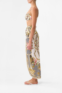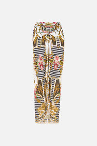 Designed in Australia, The Rococo Glow Twist Front Long Sarong features framed florals, ornate borders, and intricate ceiling and floor details that capture the regal elegance of the Palace of Queluz. Lovingly handcrafted, this luxury sarong features a twist front detail that cascades into a long, sumptuous hemline. Perfect for layering over CAMILLA swimwear for resort wear opulence. - Long Length - Twist Front Detail - Soft Waist - No Crystal Embellishment - Sheer SKU 00034134-ROCOGLOW-XS Size and Fit Our model wears a CAMILLA S and is 5'10 (178cm) tall. Her standard dress size is an AU 10. She has a 32in (83cm) bust, 35in (89.5cm) hips and a 25in (66cm) waist. CAMILLA Size S = AU10 / UK10 / US6 Our More to Love Model wears a CAMILLA Size 3XL and is 5'9 (182cm) tall. Her standard dress size is a AU 20. She has a 42in (107cm) bust, 35.8in (91cm) waist and 46in (118cm) hips. CAMILLA Size 3XL = AU20 / UK20 / US16 Fitted True to Size Fabric and Care MAIN: 34% NYLON, 34% RECYCLED NYLON, 32% ELASTANE