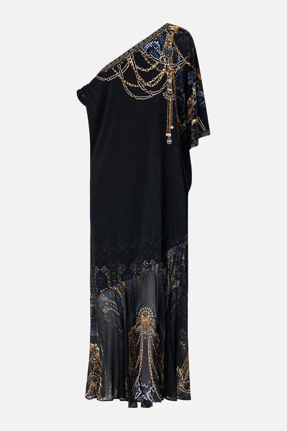 The Song Of The Solstice Twisted One Shoulder Dress is a handcrafted silhouette designed by our in house artisans. Reimagined in an exclusive limited edition print, our twisted dress is cut in a relaxed fit with an asymmetrical one shoulder neckline. The maxi length skirt features a front side split for effortless movement and refined drama. - Relaxed Fit - Maxi Length - Asymmetrical Design - Front Side Split SKU 00036717-SONGSOLS-XXS Size and Fit Our model is 5'10 (178cm) tall and wears a size S (AU 10). Bust: 40in (101.6cm) Waist: 26.5in (67cm) Hips: 38in (96.5cm) Fabric and Care 92% VISCOSE 8% ELASTANE Viscose is a fibre crafted from the natural substance, cellulose, known for its softness, breathability and drape. It possesses a subtle sheen and is perfect for lightweight soft tailored silhouettes or more structured styles in heavier weights.