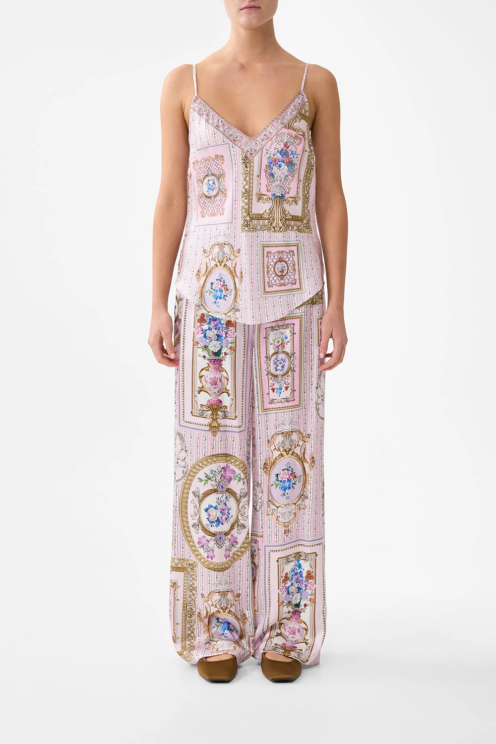 The Palatial Pastels V-Neck Bias Cami is a handcrafted silhouette designed by our in house artisans. Reimagined in an exclusive limited edition print, our embellished cami features a plunging V neckline and low back cut. While adjustable straps ensure a tailored fit, crystal embellishment add the finishing touch. - 100% Silk - Bias Cut - Adjustable Straps - Low Back - Crystal Embellishment SKU 00038761-PALAPAST-XXS Size and Fit Our model is 5'10 (178cm) tall and wears a size S (AU 10). Bust: 40in (101.6cm) Waist: 26.5in (67cm) Hips: 38in (96.5cm) Designed and fitted true to size, take your normal size. Fabric and Care 100% SILK Designed and fitted true to size, take your normal size.