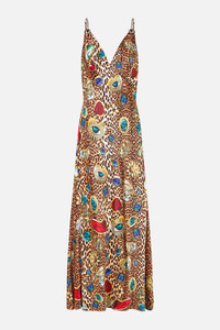 The Nazar Nirvana V-Neck Full Length Bias Slip Dress is a handcrafted silhouette designed by our in house artisans. Reimagined in an exclusive limited edition print, our maxi slip dress is adorned with a shaped panel bustline that falls into a bias cut that skims the bodice and gently cascades into a floor length hemline. Its adjustable straps and lowered back neckline offer a sleek silhouette with effortless allure and its finished with intricately placed crystal embellishment for luminous detail. - 100% Silk - V Neckline - Long Length - Bias Cut - Low Back - Adjustable Straps - Crystal Embellishment SKU 00040998-NAZANIRV-XXS Size and Fit Our model is 5'10 (178cm) tall and wears a size S (AU 10). Bust: 40in (101.6cm) Waist: 26.5in (67cm) Hips: 38in (96.5cm) Designed and fitted true to size, take your normal size. Fabric and Care 100% SILK Silk satin embodies a sumptuously smooth finish that offers a rich buttery touch to the skin. As a result of the satin weaving technique, it masterfully creates a fuller bounce to the body and drape details.