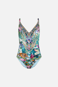 Designed in Australia, the Basked In Baroque V Neck Underwire One Piece dances in pastel hues and vibrant painterly graphics, inspired by the electric beauty of Igreja Matriz De Santa Maria and its radiant frescoes. Lovingly handcrafted, this CAMILLA one piece features soft style with underwire support, adjustable back clip closure, and convertible straps. Made with ECONYL® for eco-friendly luxury and perfect fit. - To Fit DD-E Cup - Soft Style With Underwire Support - Adjustable Back Clip Closure - Adjustable And Convertible Straps - Regular Leg Line SKU 00035476-BASKBARO-XS Fabric and Care MAIN: 82% REGENERATED POLYAMIDE, 18% ELASTANE ECONYL® is regenerated nylon, crafted from waste materials that would otherwise end up polluting our Mother Earth. Its beauty lies in its ability to be recycled, remoulded and ultimately reused time and time again. An infinitely recyclable product that keeps our planet looking beautiful, it opens the door to a circular fashion sphere.