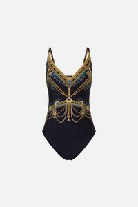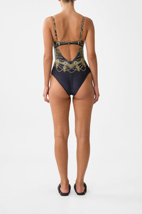 The Song Of The Solstice V Neck Underwire One Piece With Back Closure is a handcrafted silhouette designed by our in house artisans. Reimagined in an exclusive limited edition print, our V neck one piece is made for DD to E cups in mind with underwire support. Cut with a regular to low leg line and bottom coverage, it features adjustable, convertible straps and back hook closure for a supportive fit. It's finished with intricately applied crystal embellishments. - To Fit Dd-E Cup - Soft Style With Underwire Support, V Neck - Regular To Low Leg Line, Regular Bottom Coverage - Adjustable Back Hook Closure - Adjustable And Convertible Straps - Crystal Embellishment SKU 00037516-SONGSOLS-XS Size and Fit Our model is 5'10 (178cm) tall and wears a size S (AU 10). Bust: 40in (101.6cm) Waist: 26.5in (67cm) Hips: 38in (96.5cm) Fabric and Care MAIN: 82% REGENERATED POLYAMIDE, 18% ELASTANE