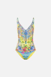 The Sultanahmet Summer V Neck Underwire One Piece With Scoop Back is a handcrafted silhouette designed by our in house artisans. Reimagined in an exclusive limited edition print, this luxury one piece is crafted with C cups in mind, featuring underwire support and adjustable straps for versatile wear. Cut with a regular-to-low leg line and offering regular coverage, it is finished with intricately placed crystal embellishments for luminous, eye catching detail. - To Fit C Cup - Soft Style With Underwire Support - Adjustable Straps - Regular Bottom Coverage - Regular To Low Leg Line - Crystal Embellishment SKU 00039200-SULTSUMM-XS Size and Fit Our model is 5'10 (178cm) tall and wears a size S (AU 10). Bust: 40in (101.6cm) Waist: 26.5in (67cm) Hips: 38in (96.5cm) Fabric and Care MAIN: 82% REGENERATED POLYAMIDE, 18% ELASTANE
