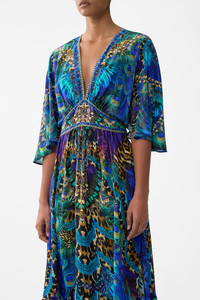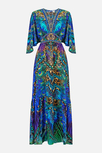 The Cosmic Zoology Waisted Dress With Hem Ruffle is a handcrafted silk silhouette designed by our in house artisans. Reimagined in an exclusive limited edition print, our full length ruffle hem dress is fitted at the waist and drops into a flared skirt. Shaped sleeves and side seam pockets finish this ode to the feminine form. - 100% Silk - Fitted At Waist With Flared Skirt - Full Length - Side Seam Pockets - Shaped Sleeves SKU 00037008-COSMZOOY-XXS Size and Fit Our model is 5'10 (178cm) tall and wears a size S (AU 10). Bust: 40in (101.6cm) Waist: 26.5in (67cm) Hips: 38in (96.5cm) Fabric and Care 100% SILK With its subtly textured surface, silk crepe is our core fabrication made perfect for versatile wear. With its ability to hold alternative ways to wear, this decadent fabric drapes elegantly off the body whilst keeping you cool with its breathable nature.