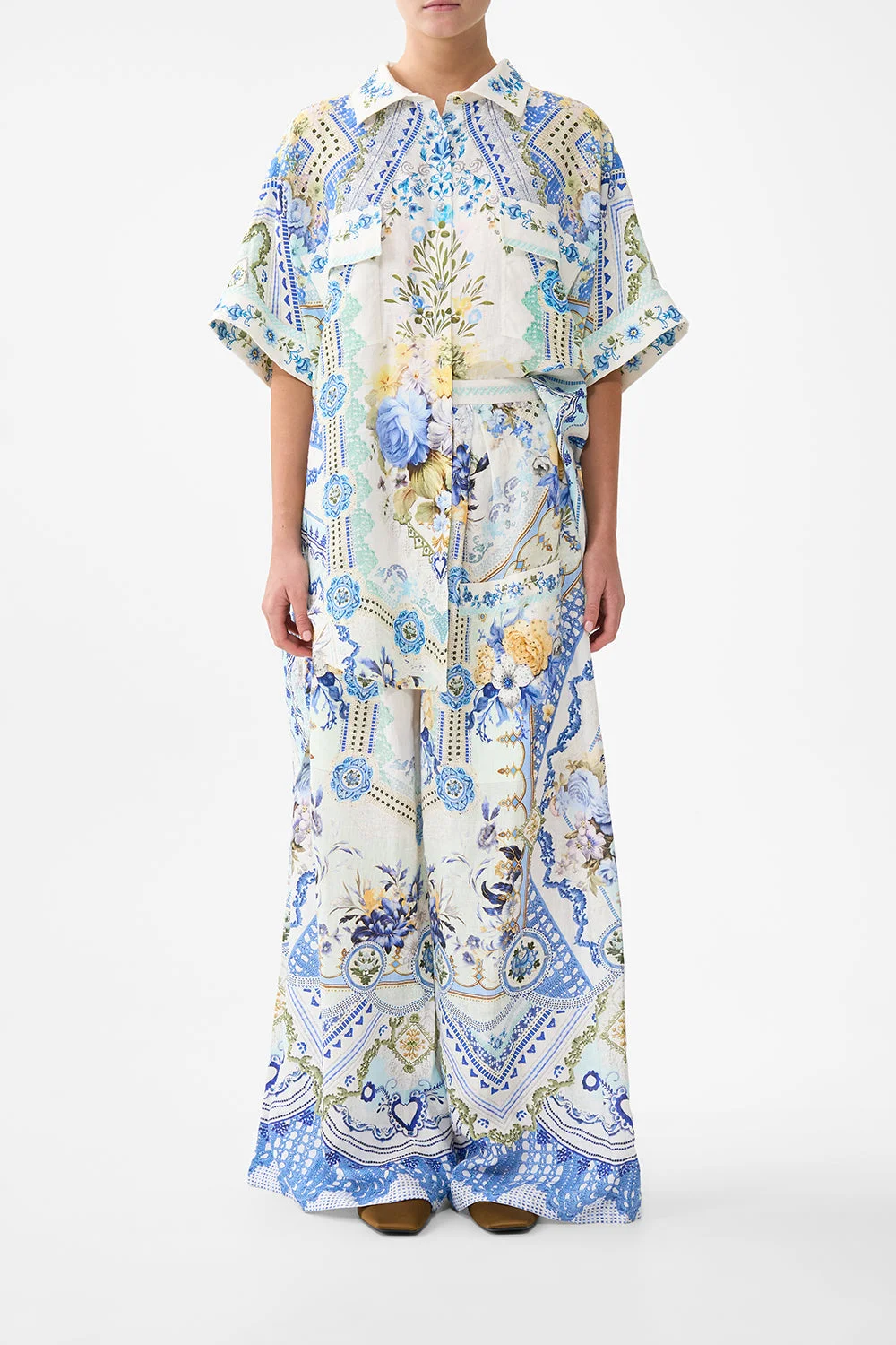 The My Homespun Heart Wide Leg Trouser With Front Pockets is a handcrafted silhouette designed by our in house artisans. Reimagined in an exclusive limited edition print, this wide leg trouser is cut in a relaxed fit and falls to a full length hemline. It features an elasticated waist for effortless wear and is finished with front pockets for versatility. - 100% Linen - Relaxed Fit - Full Length - Elasticated Waist - Wide Leg - Embroidery Detailing SKU 00038873-HOMEHEAR-XXS Size and Fit Our model is 5'10 (178cm) tall and wears a size S (AU 10). Bust: 40in (101.6cm) Waist: 26.5in (67cm) Hips: 38in (96.5cm) Designed as a relaxed fit. Take your normal size, or select one size smaller for a neater fit. Fabric and Care 100% LINEN Designed as a relaxed fit. Take your normal size, or select one size smaller for a neater fit.