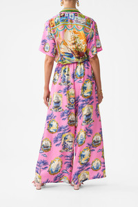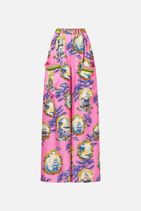 Designed in Australia, The Salty Splendour Wide Leg Trouser With Front Pockets vibrantly expresses the vibrant ocean energy that mirrors Lisbon's Saint Anthony Festival, alive with music, laughter, and summer's fresh flavours. Lovingly handcrafted, this luxury CAMILLA silk pant features a relaxed wide leg silhouette upon the high waistline. The adjustable waistband and patch pocket details exude effortless wearability. - Relaxed Fit - Full Length - Elasticated Waist - Crochet Trim At Pocket - Crystal Embellishment SKU 00033753-SALTSPLD-XXS Size and Fit Designed as a relaxed fit, take your normal size or select one size smaller for a neater fit Fabric and Care 100% SILK Silk twill is renowned for its diagonally-patterned weave and fluid texture. Its high thread count ensures rich density and durability, while its beautiful sheen provides a luscious touch to the skin.