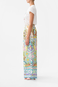 Designed in Australia, the Just Coasting Wide Leg Trouser With Front Pockets radiates a kaleidoscope of pastel dreams, sunlit charm and coastal treasures inspired by boundless seaside reveries. Lovingly handcrafted, this luxury CAMILLA silk pant features a relaxed wide leg silhouette upon the high waistline. The adjustable waistband and patch pocket details exude effortless wearability. - Relaxed Fit - Full Length - Elasticated Waist - Wide Leg - SKU 00035365-JUSTCOAS-XXS Size and Fit Our model wears a CAMILLA S and is 5'10 (178cm) tall. Her standard dress size is an AU 10. She has a 32in (83cm) bust, 35in (89.5cm) hips and a 25in (66cm) waist. Camilla S = AU10 / UK10 / US6 Designed as a relaxed fit—take your normal size, or select one size smaller for a neater fit. Fabric and Care 100% SILK Silk twill is renowned for its diagonally-patterned weave and fluid texture. Its high thread count ensures rich density and durability, while its beautiful sheen provides a luscious touch to the skin.