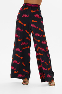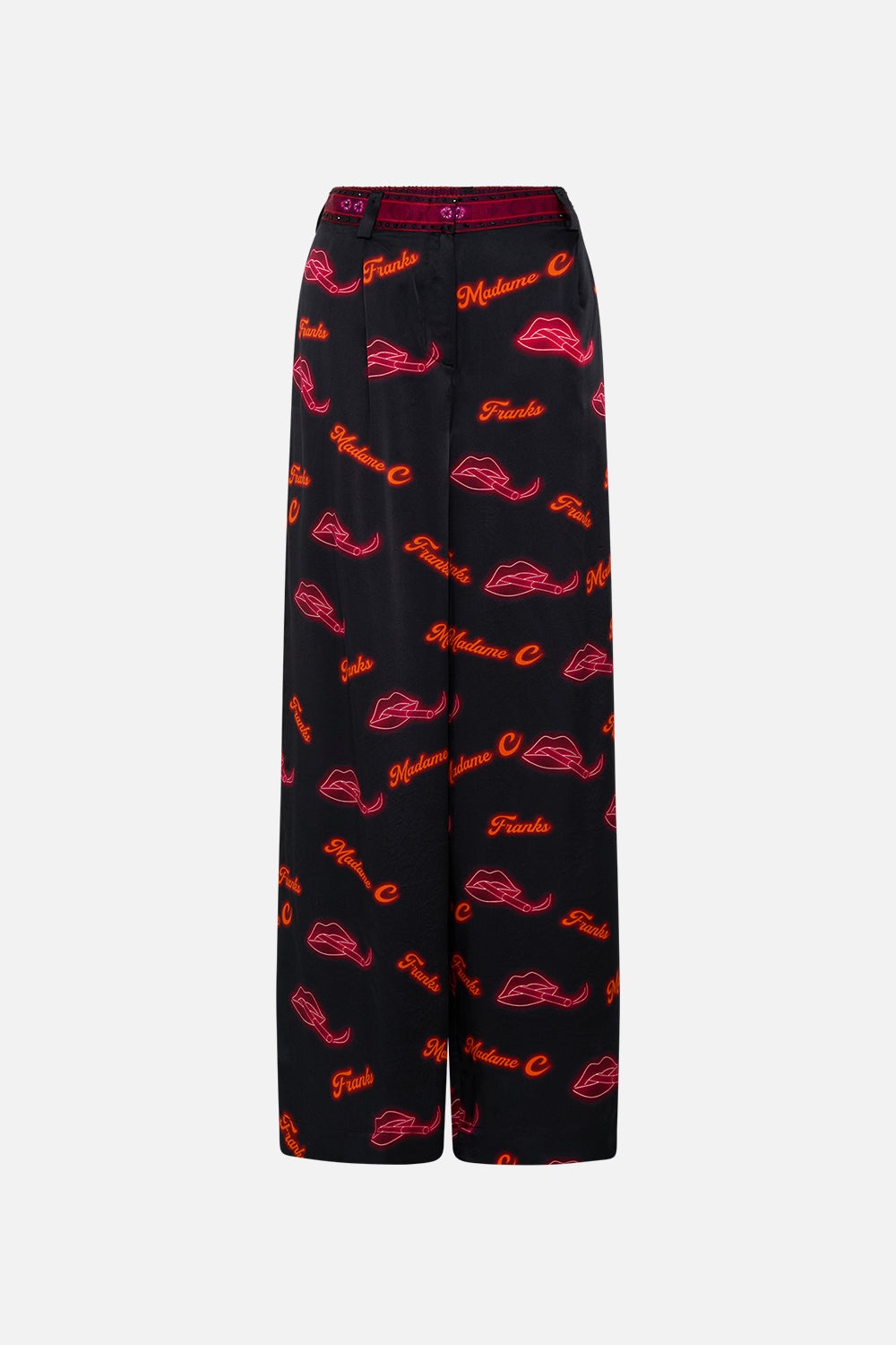 The Electric Loveland Wide Leg Waisted Pant encapsulates the seductive allure of night life magic and bold neon lights. This CAMILLA silk pants feature a generous relaxed wide leg fit that cinches into the adjustable high waistband detail. Falling at full length this pants create a romantic billow with every step. Explore more from the Wonderkind collection. - Lovingly Handcrafted - Designed in Australia - CAMILLA Ready-To-Wear - Crystal embellishment - Elastic encased waistband - Fly front detail - Pockets - Wide leg trouser - Belt loops - High waisted SKU 00031218-ELECLAND-XS Size and Fit Our model wears a CAMILLA S and is 5'10 (178cm) tall. Her standard dress size is an AU 10. She has a 32in (83cm) bust, 35in (89.5cm) hips and a 25in (66cm) waist. Camilla S = AU10 / UK10 / US6 Designed as a relaxed fit, take your normal size or select one size smaller for a neater fit Fabric and Care 100% SILK Silk satin embodies a sumptuously smooth finish that offers a rich buttery touch to the skin. As a result of the satin weaving technique, it masterfully creates a fuller bounce to the body and drape details.