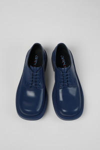 Blue leather lace-up shoes with rubber outsoles. Features Upper 100% Calfskin Color Blue Outsole/Features 50% Rubber, 30% Natural Rubber, 20% Recycled Rubber Insole OrthoLite® Recycled™ Footbed Lining 72% Calfskin, 28% Textile (45% Recycled Polyester, 35% Recycled Cotton, 20% Viscose)