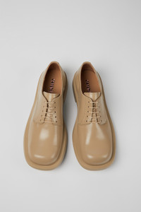 Beige leather lace-up shoes with rubber outsoles. Features Upper Calfskin (Leather Working Group Certified) Color Beige Outsole/Features Rubber / Natural rubber / Recycled rubber Insole OrthoLite® for cushioning Lining 73% calfskin 27% textile (45% recycled polyester - 35% recycled cotton - 20% viscose)