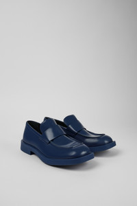 Blue leather moccasins with recycled OrthoLite® footbeds and rubber outsoles. Features Upper 100% Calfskin Color Blue Outsole/Features 50% Rubber, 30% Natural Rubber, 20% Recycled Rubber Insole OrthoLite® Recycled™ Footbed Lining 73% Calfskin, 27% Textile (45% Recycled Polyester, 35% Recycled Cotton, 20% Viscose)