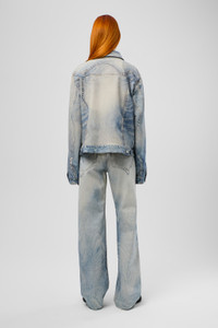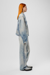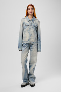 Blue jeans in quality Candiani Italian denim for enhanced durability and a soft feel. Featuring a seasonal contrast-color print for a bold urban look. Features Material 76% Organic Cotton, 24% Recycled Cotton Color Blue Features - Zip and button fly - Belt loops Size and Fit Relaxed unisex fit. Straight leg, long length. For a looser fit that sits lower on the hips, size up. Male model is 189cm and wearing size 30 Female model is 179cm and wearing size 28 Female Model Measurment Bust: 80 cm Waist: 60 cm Hips: 88 cm Male Model Measurment Bust: 88 cm Waist: 69 cm Hips: 90 cm