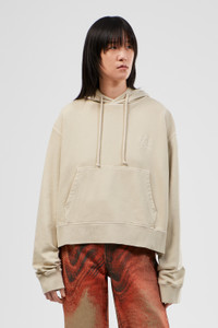 Beige hoodie in 100% mineral-dyed organic cotton with cut-out detail at back. Features Material 100% Organic Cotton Color Beige Features Cropped length Drawstring hood Pouch pocket Tonal logo embroidery at chest Size and Fit Unisex For a more cropped look, size down. Male model is 191 cm and wearing size M Female model is 178 cm and wearing size S