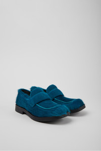 Blue calf hair leather loafers with rubber outsoles. Features Upper Calfskin (Leather Working Group Certified) Color Blue Outsole/Features Rubber / Natural rubber / Recycled rubber Insole OrthoLite® for cushioning Lining 73% calfskin 27% textile (45% recycled polyester - 35% recycled cotton - 20% viscose)