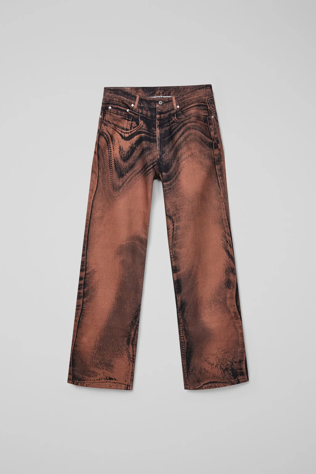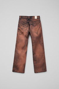 Brown-black jeans in quality Italian Candiani denim made from a blend of responsibly sourced organic cotton and recycled post-consumer waste, offering enhanced durability and a soft feel. Features Material 76% Organic Cotton, 24% Recycled Cotton Color Brown-Black Features - Zip and button fly - Belt loops Size and Fit Relaxed unisex fit Straight leg, long length For a looser fit that sits lower on the hips, size up