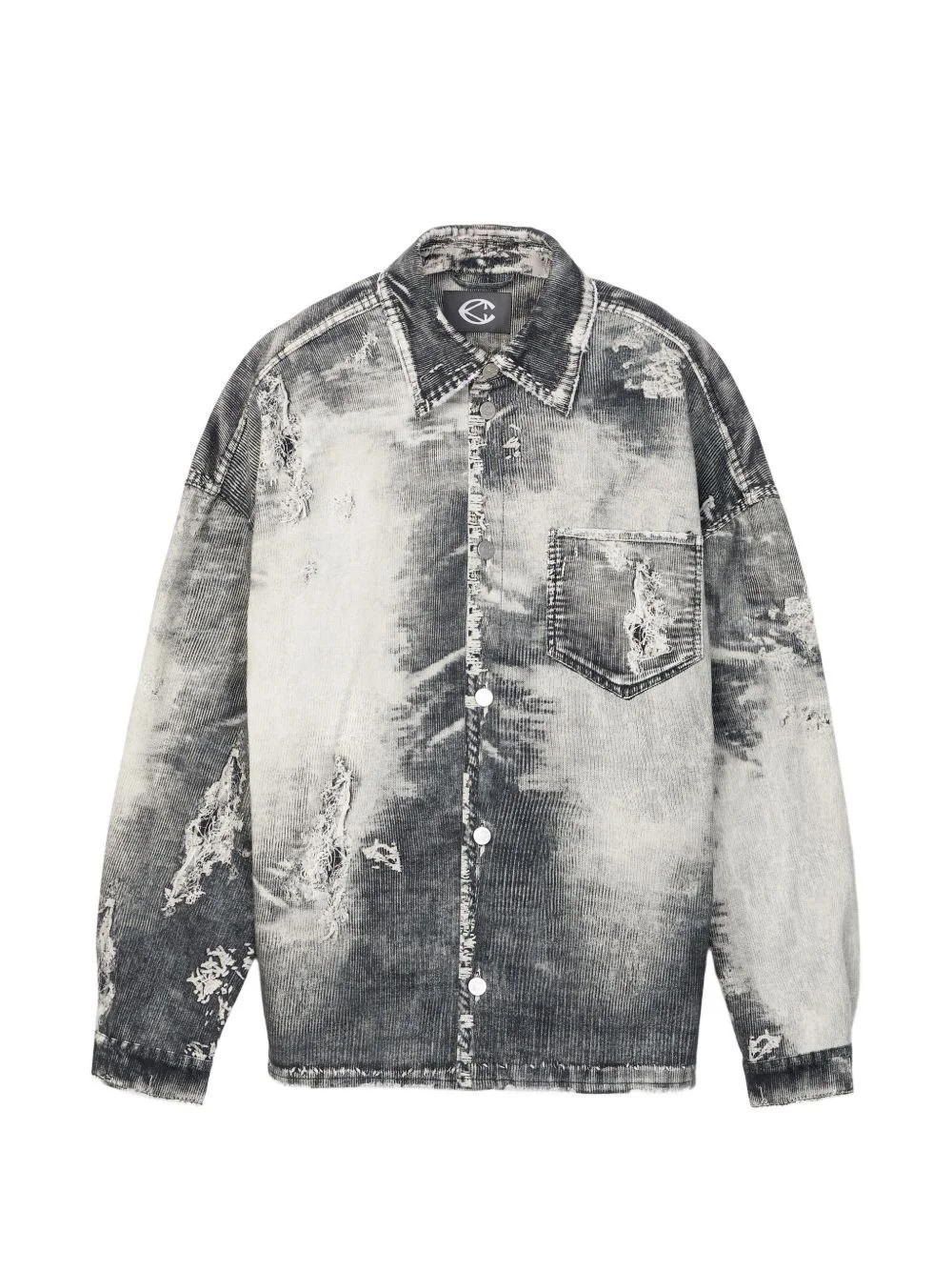 distressed denim shirt Highlights - Grey and white - Chest pocket - Button fastening - Distressed detailing - Denim design - Corduroy texture Imported Composition Organic Cotton 100% Washing instructions Read Manufacturer Guidelines