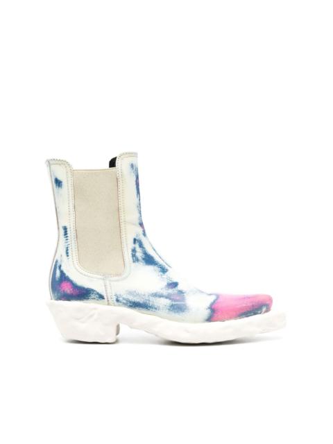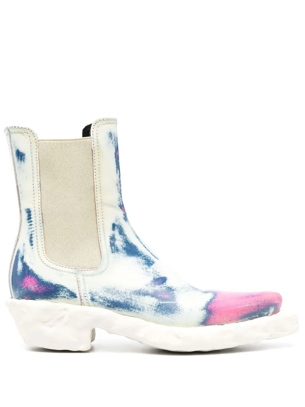 distressed-effect ankle boots Highlights - White/multicolour - Distressed effect - Pointed toe - Elasticated side panels - Pull-on style - Ankle-length - Flat rubber sole - Low block heel Imported Composition Outer: Rubber 100% Sole: Rubber 100% Lining: Fabric 100% SIZE & FIT Measurement HEEL 1.96 in(5 cm) HEIGHT 6.69 in(17 cm) Sole height 0.78 in(2 cm)
