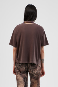 Dusty brown mineral-dyed 100% organic cotton T-shirt with cut-out neck detail at back. Features Material 100% Organic Cotton Color Dusty brown Features Cropped length Tonal logo embroidery at chest Size and Fit Unisex For a more cropped look, size down. Male model is 191 cm and wearing size M Female model is 178 cm and wearing size XS