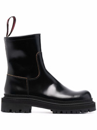 Eki boots Highlights - Black - Leather - Ankle-length - Pull-tab at the heel - Side zip fastening - Round toe - Branded insole - Ridged rubber sole Imported Composition Outer: Leather 100% Lining: Leather 73%, Recycled PET 27% Sole: Rubber 100% SIZE & FIT Measurement CIRCUMFERENCE 9.25 in(23.5 cm) HEEL 1.57 in(4 cm) HEIGHT 6.88 in(17.5 cm) Sole height 0.98 in(2.5 cm)