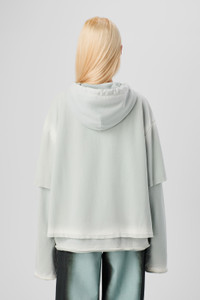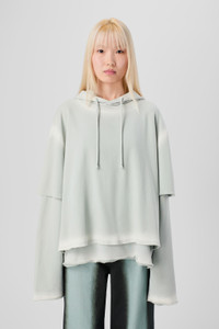 Faded gray organic cotton layered long sleeve hoodie with cut-out details. Featuring hand-applied spray placement for a unique finish. Features Material Organic Cotton Color Gray Terracotta with hand-applied Spray placement Size and Fit - Relaxed fit - Wide neckline - Clean, structured lines - Dropped shoulder - Non-detachable sleeve layers