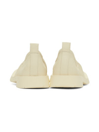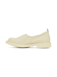 LWG-certified buffed calfskin loafers in off-white. · Ruching at elasticized collar · Pull-loop at heel collar · Buffed leather lining · OrthoLite® Recycled™ footbed · Treaded rubber sole · Heel: H1.25" Supplier color: White