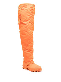 padded knee-high boots Highlights - Orange - Round toe - Ridged rubber sole - Adjustable side straps - Ridged rubber sole - Knee-high - Drawstring fastening Imported Composition Sole: Rubber 100% Outer: Fabric 100% Lining: Fabric 100% SIZE & FIT Measurement CIRCUMFERENCE 22.83 in(58 cm) HEEL 1.57 in(4 cm) HEIGHT 28.34 in(72 cm) Sole height 0.78 in(2 cm)