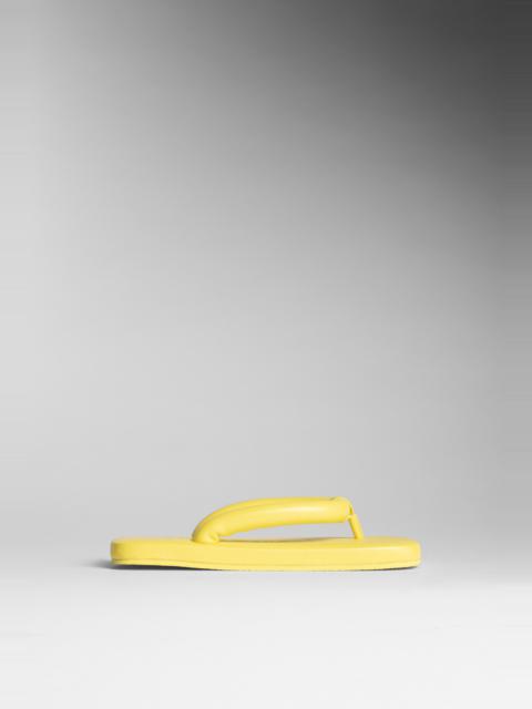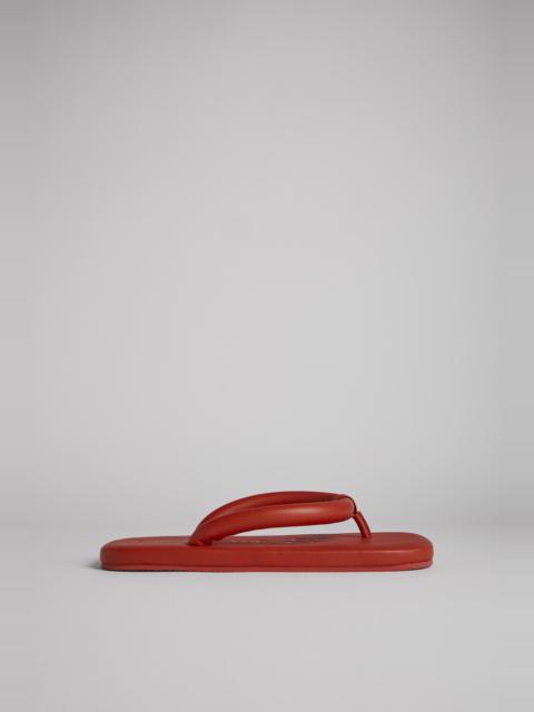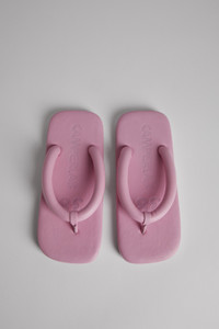 Pink leather flip-flop sandals with squared design and memory foam footbed. Comes with split-toe tabi socks made of embossed organic cotton in matching color. Features Upper Calfskin Color Pink Outsole/Features Rubber Lining 100% Calfskin Leather Working Group Certified