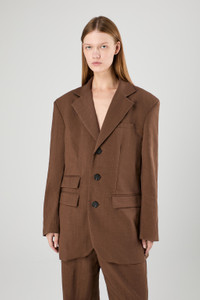 Tailored Blazer crafted from ECONYL® nylon, a 100% regenerated fibre made by recovering nylon waste materials.<br/><br/>The technical fabric's structured surface offers a sleek aesthetic, while keeping the fit relaxed and modern. Features Material Outer: 100% ECONYL® Recycled Polyamide Lining: 100% Polyester Color Brown Features Single-breasted Notch lapel Four button cuffs Piped pocket at chest Flap pockets at front Back vent Shoulder pads Size and Fit Unisex Regular fit Male model is 185 cm and wearing size M Female model is 175 cm and wearing size S