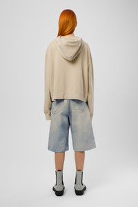 Blue shorts in Candiani Italian denim, made from a superior quality, durable, soft feeling cotton blend that does not require the use of harmful chemicals. Features Material 76% Organic Cotton, 24% Recycled Cotton Color Blue Features - Belt loops Size and Fit Relaxed unisex fit. For a more low-rise look, size up. Male model is 189cm and wearing size 30 Female model is 179cm and wearing size 28 Female Model Measurment Bust: 80 cm Waist: 60 cm Hips: 88 cm Male Model Measurment Bust: 88 cm Waist: 69 cm Hips: 90 cm