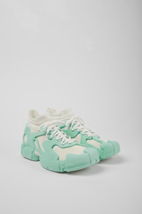Light green caged sneakers with water-repellent 3D-knitted PET sock interiors, direct injection TPU exteriors, and recycled PU outsoles. Fully recyclable. Features Upper Textile / Synthetic Color Light Green Outsole/Features PU / TPU Insole PU Lining 80% textile (75% recycled polyester - 14% Hilo PU - 11 spandex) 20% recycled polyester