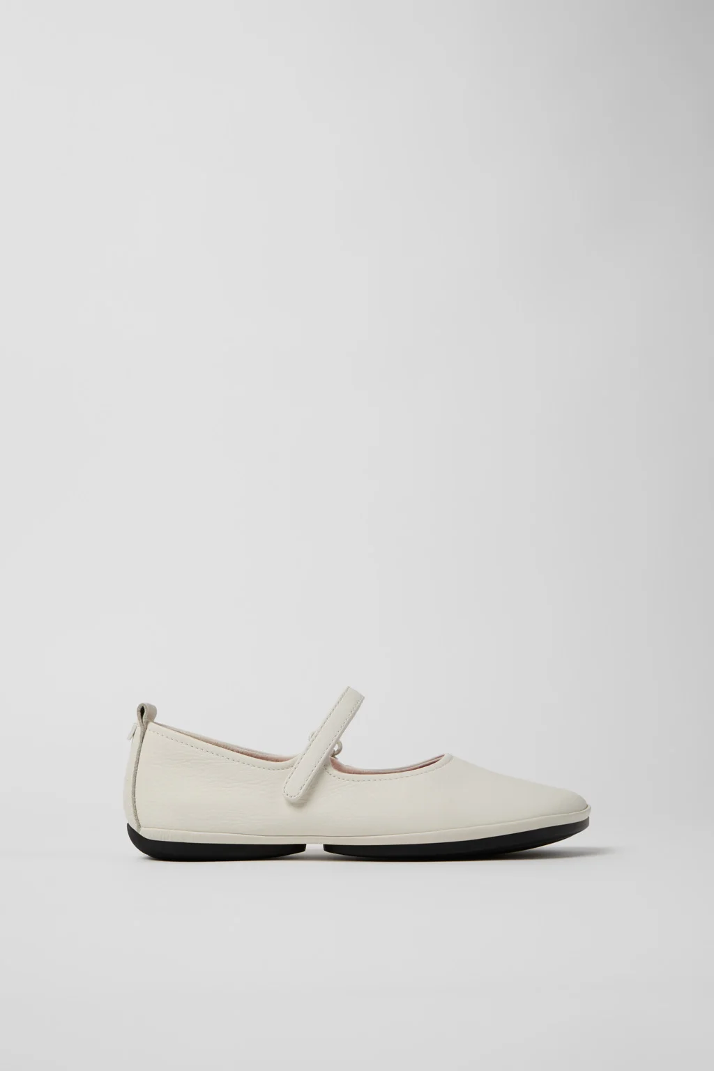 White calfskin ballerinas for women with removable EVA footbeds, hook-and-loop system, and rubber outsoles (20% recycled). First launched in 2005, our Right combines the flexibility of ballerina slippers with the durable protection of street-ready rubber soles. Features Upper 100 % calfskin Color White Outsole/Features Rubber Outsole (20% Recycled) Hook and loop closing system for easy fit Insole EVA removable Footbed Lining 52 % calfskin 48 % recycled polyester
