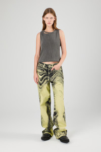 Yellow-Black Distorted Print Denim Jeans