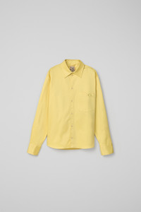 Yellow shirt made from heavyweight Italian cotton with a satin finish, featuring a relaxed silhouette that enhances the classic button-up. Features Material 94% Cotton / 6% Elastane Color Yellow Features Heavyweight Italian cotton fabric with satin construction and shiny effect Shirt collar Patch pocket at chest with embroidered logo Adjustable sleeve buttons Size and Fit Unisex Relaxed fit Male model is 185 cm and wearing size M Female model is 175 cm and wearing size M