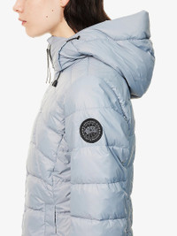 PRODUCT DETAILS - Canada Goose shell-down jacket - 100% polyamide; filling 90% duck down, 10% duck feather; lining 100% polyamide - Exposed zip fastening at front - Slim fit, high neck, drawstring hood, long sleeves, brand patch at sleeve, elasticated cuffs, two buttoned pockets at front, cinched waist, all-over quilted and padded, fully lined - Machine wash at 30°C - True to size - Size small: length 24in / 61cm - Model is 5ft 10in/1.78m and wears a size small - Lightweight, slight stretch Ref: R04422205
