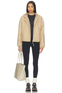 - Self 1: 52% wool 39% polyester 5% polyamide 4% other fibers Self 2 and 3: 57% cotton 43% polyamide Filling: 100% polyester - Made in Albania - Dry clean - Front zipper with snap button closures - Snap button slant pockets - Woven textile with contrast teddy textile - Reversable - Revolve Style No. CANA-WO193 - Manufacturer Style No. 7068W