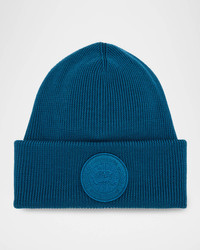 Canada Goose "Arctic Toque" knit beanie with an embroidered logo patch at front Round crown Folded cuff Ribbed Merino wool Made in Italy