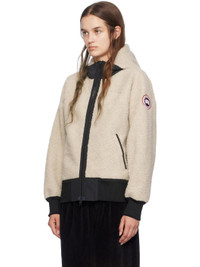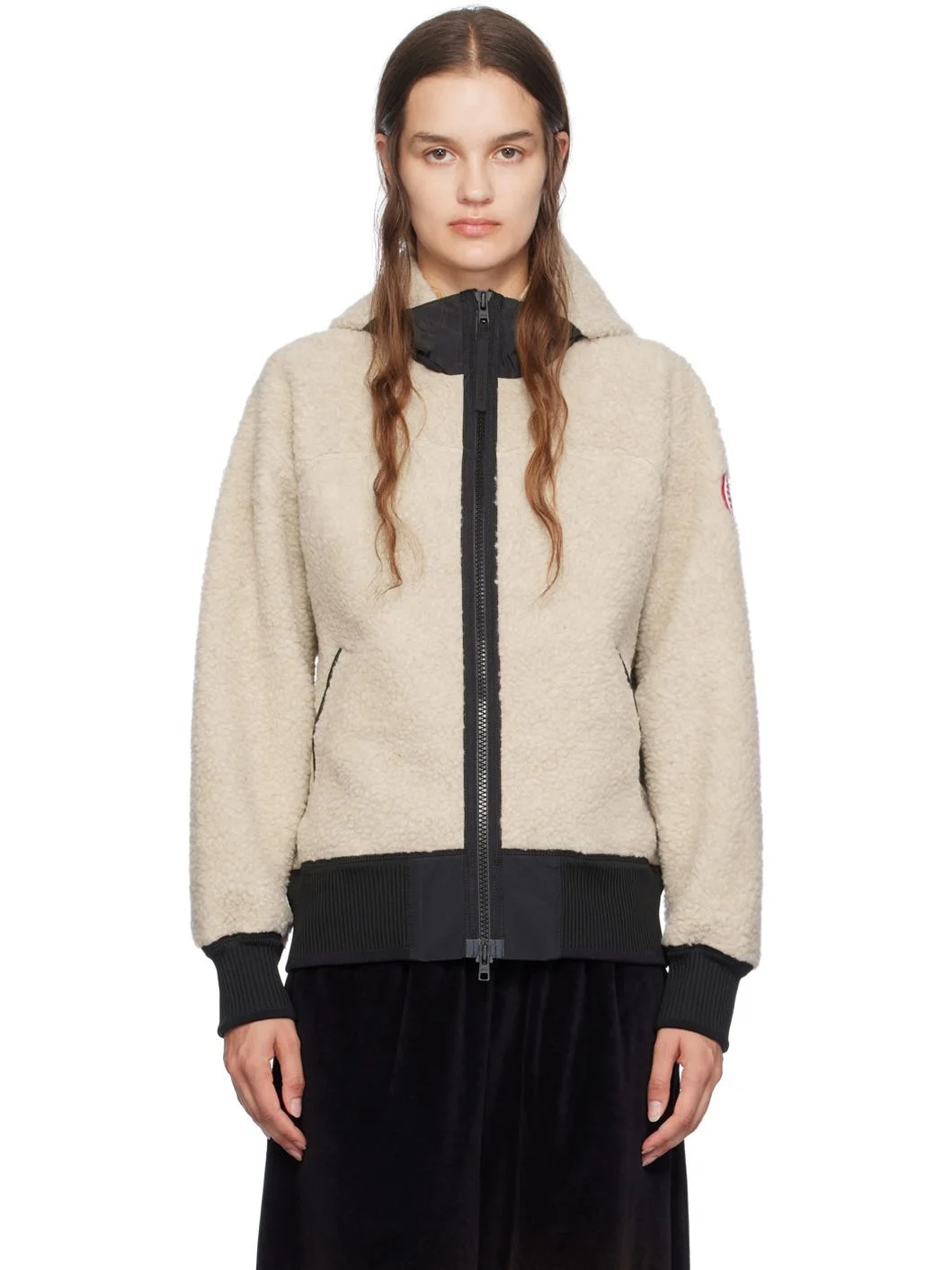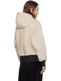 Recycled wool-blend fleece hoodie. · CORDURA® nylon faille panel at hood · Stand collar · Two-way zip closure · Welt pockets · Rib knit hem and cuffs · Embroidered logo patch at sleeve · Reflective trim at back collar · Full jersey lining Supplier color: Light tan Body: 52% recycled wool, 39% polyester, 5% polyamide, 4% other fibres. Trim: 100% polyamide. Lining: 100% lyocell. Made in Romania 242014F097013