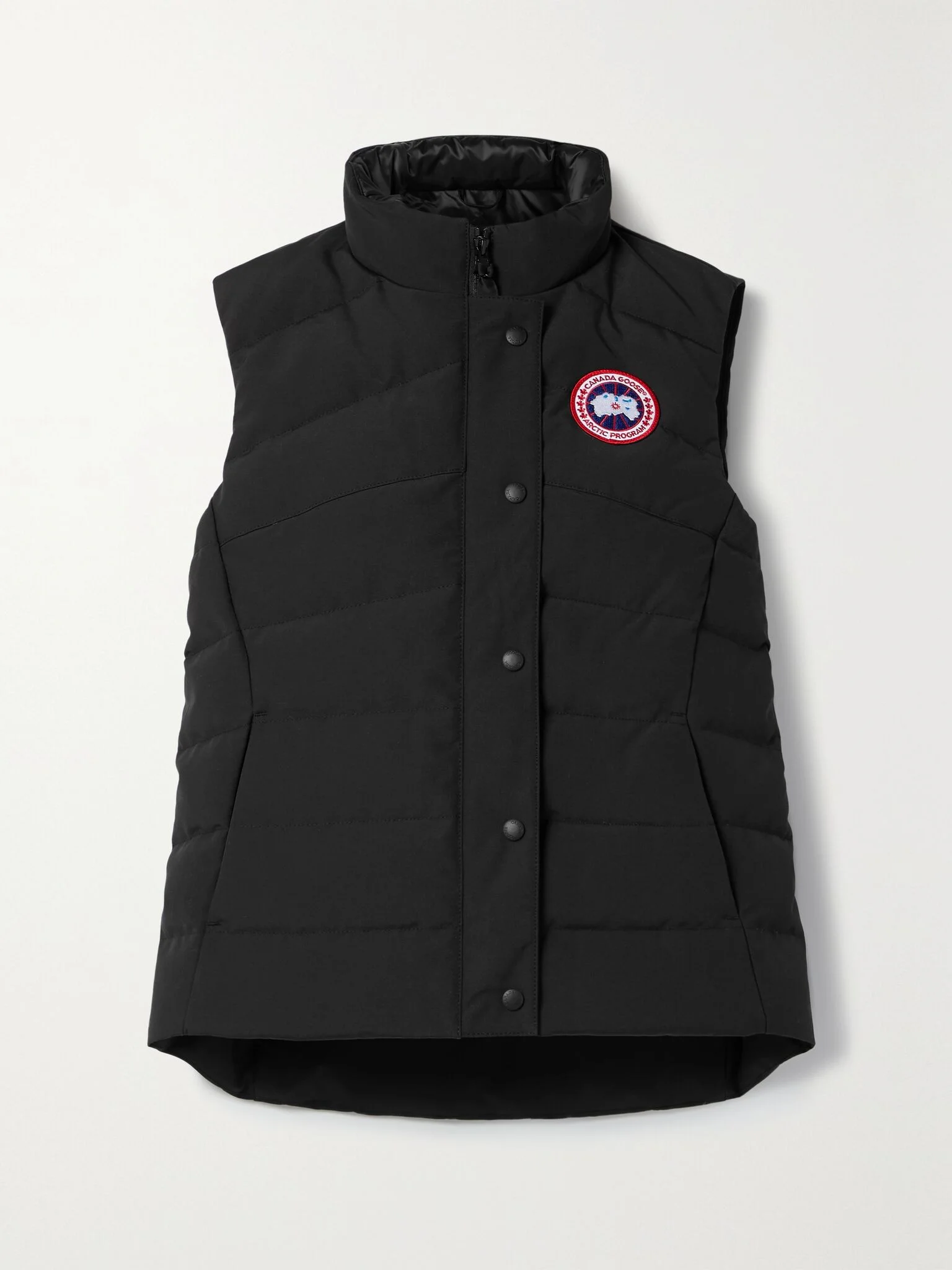 Ideal for transitional weather, Canada Goose's versatile 'Freestyle' vest adds just the right amount of warmth and layers comfortably over anything from a turtleneck to a lightweight jacket. It's made from durable quilted shell that's water- and wind-resistant and filled with insulating down. The pockets secure small essentials and the logo applique is an instantly recognizable detail. Size & Fit - Fits true to size, take your normal size - Designed for a close fit - Quilted, non-stretchy fabric - Model is 177cm/ 5’10” and is wearing a size Small Details & Care - Black shell - Snaps and concealed zip fastening through front - 84% polyester, 16% cotton; filling: 80% down, 20% feathers (Duck); lining: 100% polyester - Dry clean