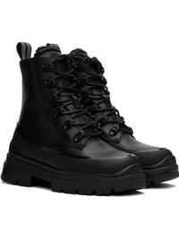 Ankle-high buffed leather boots in black. · Rubber trim throughout · Lace-up closure · Logo embossed at outer side · Reflective pull-loop at heel collar · Shearling lining · Serrated edge at welt · Treaded rubber sole Supplier color: Black Upper: leather. Sole: rubber. Made in Portugal 242014F113004