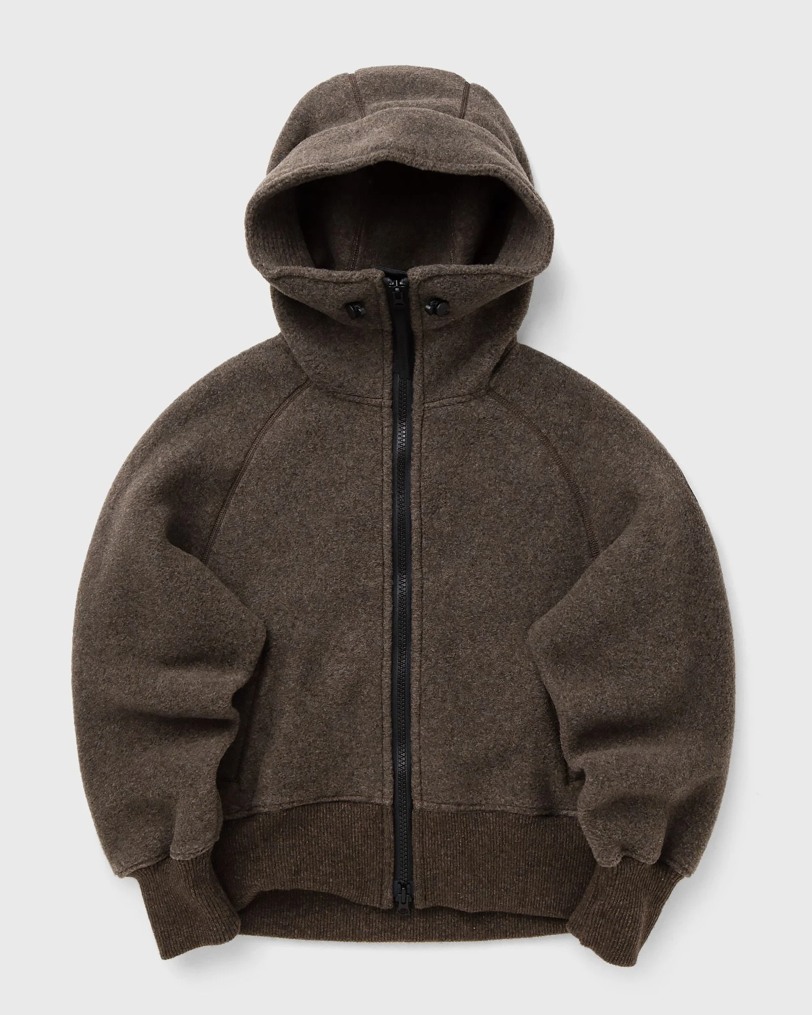 The Canada Goose Chilliwack Bomber Jacket is made from Kind Fleece—the next generation of fleece materials, consisting of recycled wool and bio-based fibers, among other things. The iconic bomber silhouette is enhanced by an adjustable snorkel hood, ribbed cuffs and hem, and reinforced high-abrasion zones with CORDURA. - Non-detachable hood with adjustable drawstring - Ribbed cuffs and hem - Areas subject to heavy wear are reinforced with CORDURA fabric for added durability - Two side seam pockets Article number: 7102WB-9842 Gender: women Color: TERRA - TERRA Material: 17% Lyocell, 4% Polyamide, 13% Polyester, 4% Other, 62% Brass