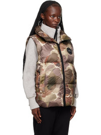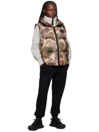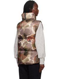 Lightweight down-filled quilted recycled nylon ripstop vest. Graphic pattern printed throughout. · Water-repellent and wind-resistant · Funnel neck · Two-way zip closure · Embroidered logo patch at chest · Zip pockets · D-ring hardware at front · Concealed bungee-style drawstring at hem · Zip and mesh pocket at interior · Fully lined Supplier color: Botanical print Fill: 90% duck down, 10% duck feather. 100% polyamide. Made in Canada 232014F068001