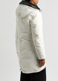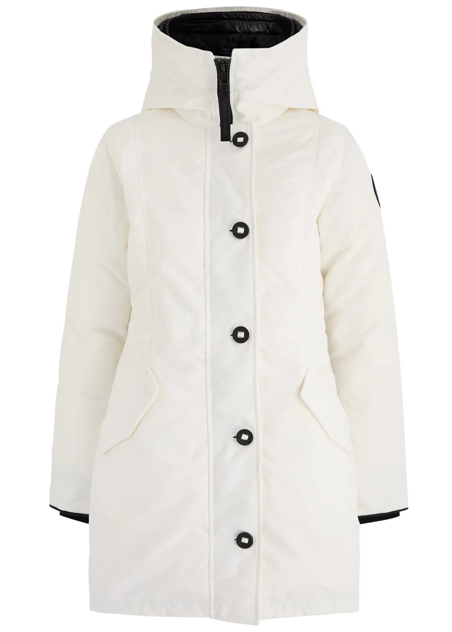 Info & Care Canada Goose Arctic Tech quilted shell coat Canada Goose Thermal Index 3 (fundamental) Designed for temperatures between -10°C and -20°C Part of the Black Label collection Water-repellent, hooded,;adjustable strap at hood, high-neck, tricot lined chin quard, embroidered designer plaque at sleeve,;ribbed-knit cuffs, underlay, two press-stud flap pockets at the front, two internal mesh pockets, internal toggle-fastening drawstring at waist, internal harness straps, internal zip-fastening slip pocket, longer back hem, zip-fastening back vent, fully lined Concealed two-way zip-fastening through front, military style buttons through front Fabric 1: 84% polyester, 16% cotton; lining 1: 100% polyamide; lining 2: 100% polyamide; fill: 80% duck down, 20% duck feather Dry clean Size & Fit Length shoulder to hem front: 33.5 inches/ 85cm Length shoulder to hem back: 36 inches/ 91.5cm Midweight Relaxed fit; Model is 5'8"/ 172cm and wears a size small