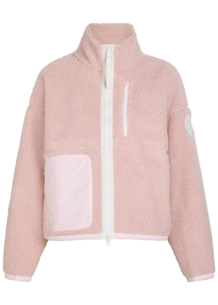 Info & Care Canada Goose fleece jacket High-neck, dropped shoulders, designer plaque applique at sleeve, three zip-fastening pockets at front, shell trims, concealed drawstring at adjustable hem, exposed seams, fully lined; Two-way zip fastening through front Fabric 1: 56% wool, 33% polyester, 6% other fibres, 5% polyamide; fabric 2: 100% lyocell; fabric 3: 100% polyamide Dry clean; Size & Fit Length shoulder to hem: 21 inches/ 53.5cm Midweight Relaxed boxy fit Model is 5'9"/ 175cm and wears a size small