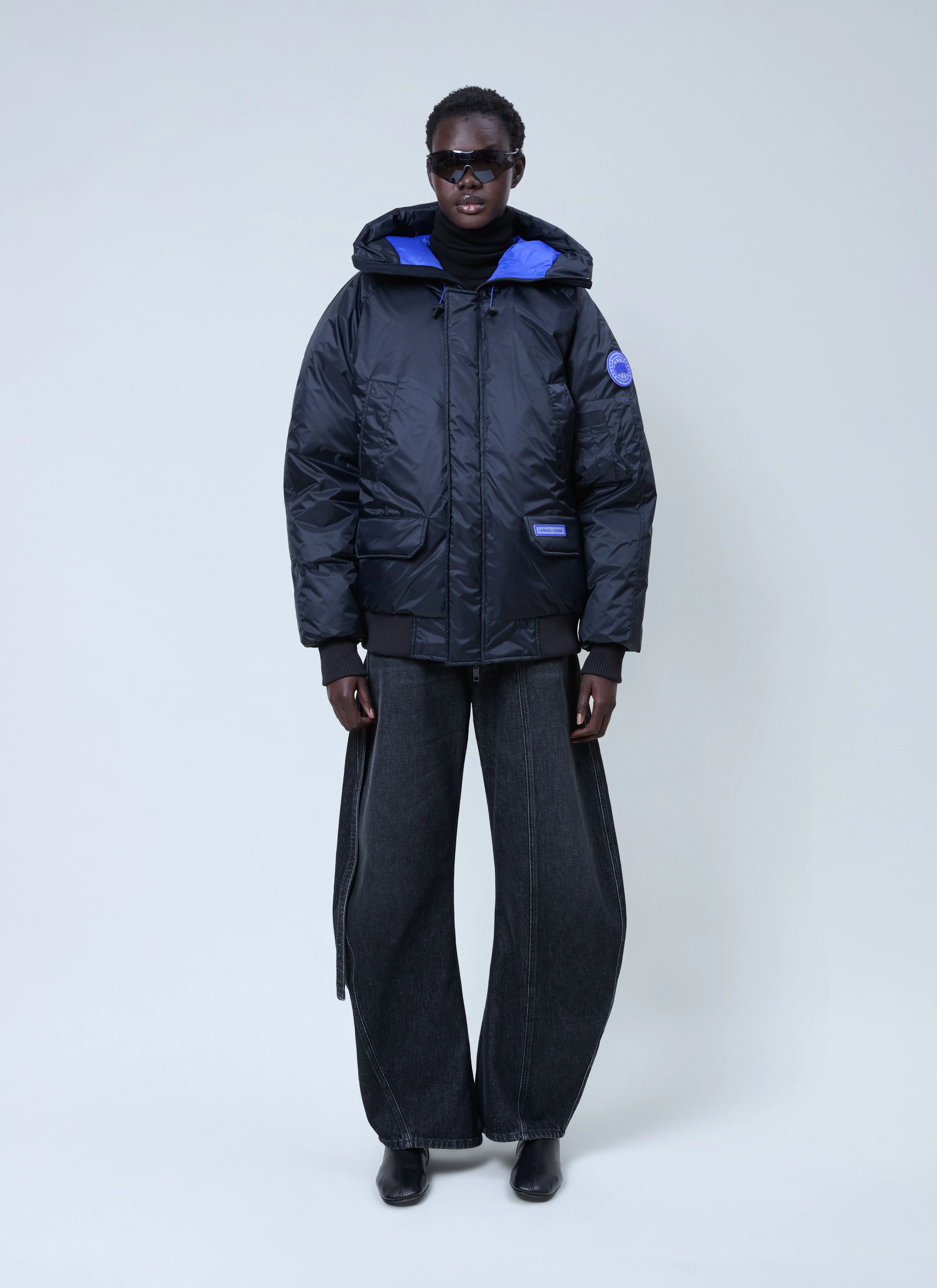 Crafted from Recycled Organic Arctic Tech®. - Stand collar - Front button and zip fastening - Long sleeves - Side logo patch - Multiple pockets - Tricot-lined chin guard - Interior backpack straps for hands-free carrying capabilities - 100% Polyamide. 80% Down, 20% Feather. Dry clean - Color: Blue - Code: 2050U2 9069