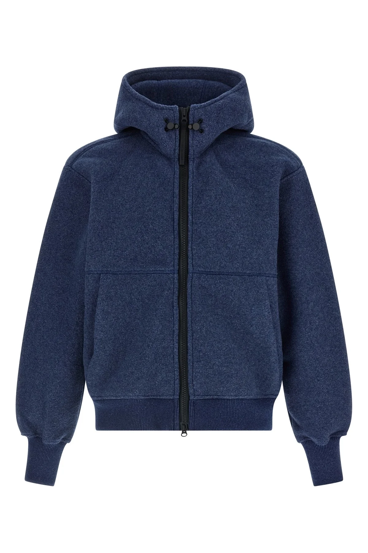 cod. 7220MB9841 New generation Kind Fleece'Chilliwack' fleece bomber jacket with CORDURA® reinforced areas, adjustable snorkel hood, high neck, front zip closure, pockets, long cuffed sleeves and logo patch applique, and headband. SUSTAINABLE: In a thick petroleum-based textile category, Canada Goose has developed 'Kind Fleece': a new generation of fleece to help keep the planet cold and people warm. This soft and breathable fabric is made from 62% recycled wool, 18% wood-based TENCEL™ Lyocell, 13% partially organic Sorona® polymer and 7% polyamide. Color: Blue Size & Fit: Comfort fit Composition: 62% wool 17% lyly 13% polyester 4% polyamide 3% of Made in: Canada